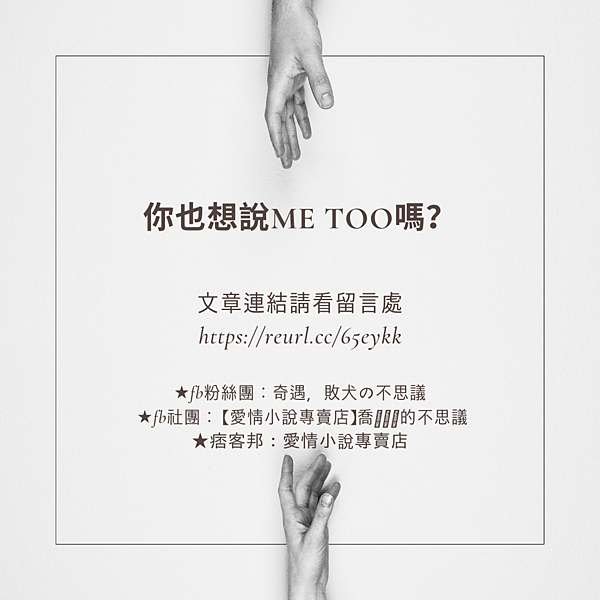 向勇敢揭露Me too事件的所有人致意,感謝有你們的挺身而出!