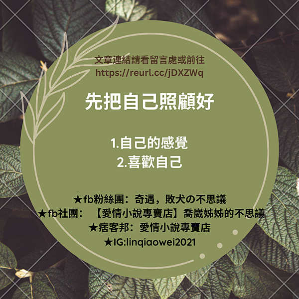 這禮拜想和大家分享的主題是:先把自己照顧好,因為喬崴姐姐知道很多人都沒有先好好照顧自己。