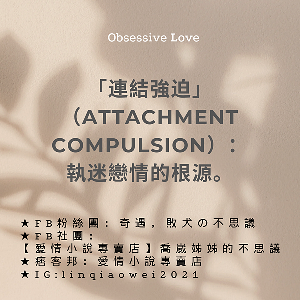 喬崴姊姊想要和大家分享的是書中提到的一個重要的概念——「連結強迫」(Attachment Compulsion):執迷戀情的根源。
