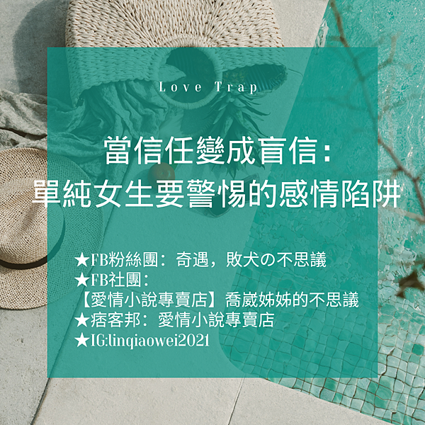 「當信任變成盲信:單純女生要警惕的感情陷阱」這句話其實也適用在單純的男生身上,喬崴姊姊為什麼想和大家談談這話題,是因為最近聽到一些身邊好友的家人故事,讓我有感而發。