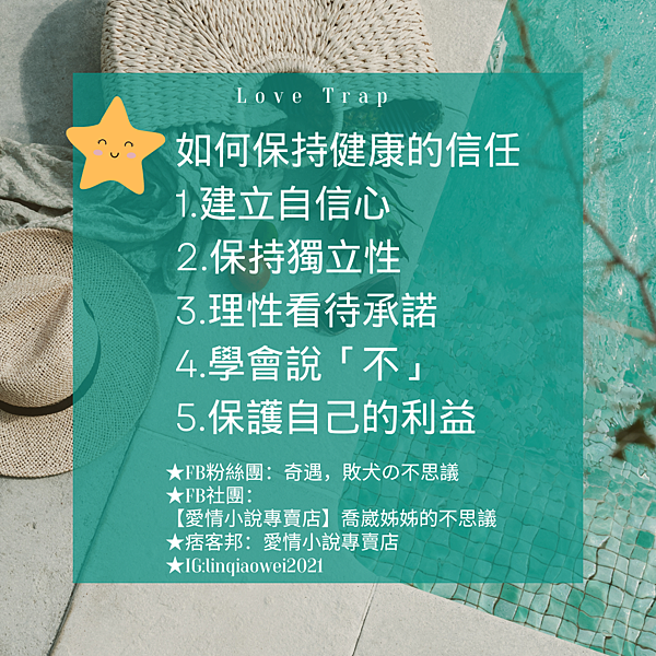 - 保持獨立性:即使在戀愛中,也應該保持自己的生活圈子和興趣愛好,避免過度依賴對方。