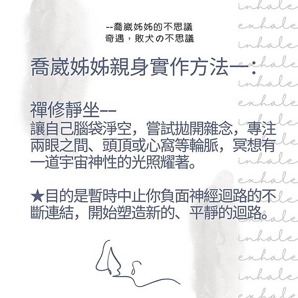 每個人適合的療癒心法不盡相同,但不去試永遠也不知道會不會讓自己從此改變,獲得力量和平靜的心靈,祝福大家早日情感自由喔!
