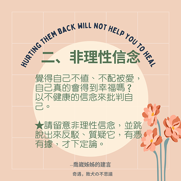 常檢視自己的信念是否正確、非理性,絕對是靈性成長的第一步。祝福大家,早日可以找到另一半,不想有情感羈絆的,也可以單身愉快喔!