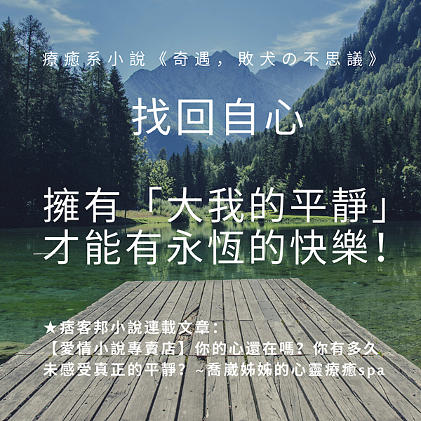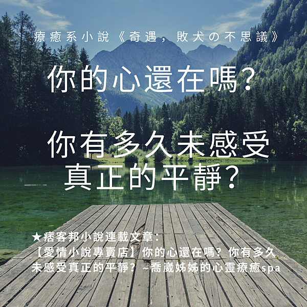 【愛情小說專賣店】 喬崴姊姊認為追求心靈平靜是我們這一生最重要的功課,「找回自己的心」並擁有情緒主控權,對於所有的外在情感干擾都可以有隔岸觀火的心性境界,這樣就離真正的快樂不遠了!希望大家能把自己的心找回來,現今紛擾太多,資訊太龐雜,常常讓我們沒辦法活在當下,心緒不斷飄忽,想著未竟的事,害怕跟不上時代的腳步,這樣的心太累了,我們要的是保有如實平靜的心,心定人定,才有快樂的可能。