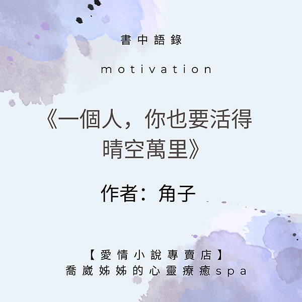 【愛情小說專賣店】要介紹角子老師的另一本書《一個人,你也要活得晴空萬里》,不管是單身還是恢復單身,都要讓自己活得晴空萬里。