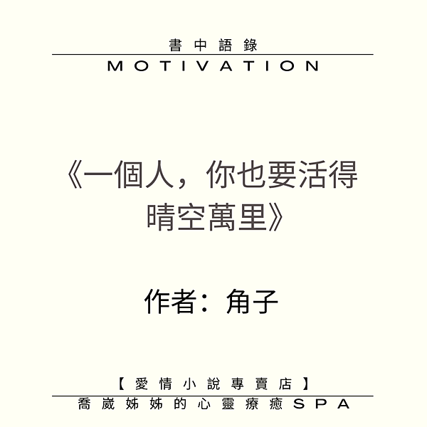 【愛情小說專賣店】《一個人,你也要活得晴空萬里》角子老師書中語錄~喬崴姊姊的心靈療癒spa