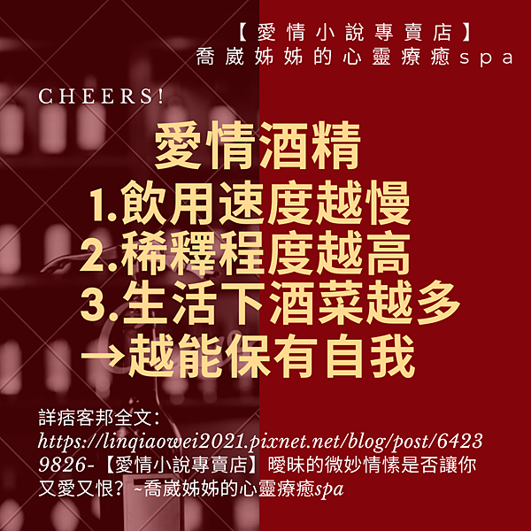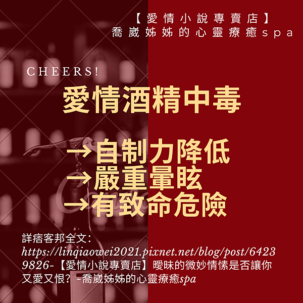 喬崴姊姊還是要提醒各位男男女女們,愛情就像喝酒一樣,你喝得越快越多,你就容易意識不清,甚而有致命的危險,不可不防啊!