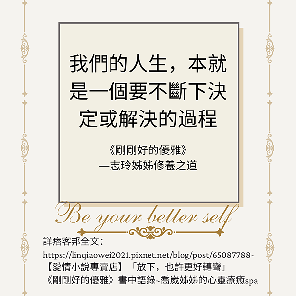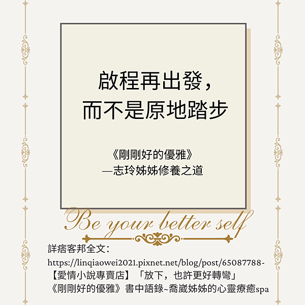 【愛情小說專賣店】林志玲《剛剛好的優雅》書中語錄~喬崴姊姊的心靈療癒spa