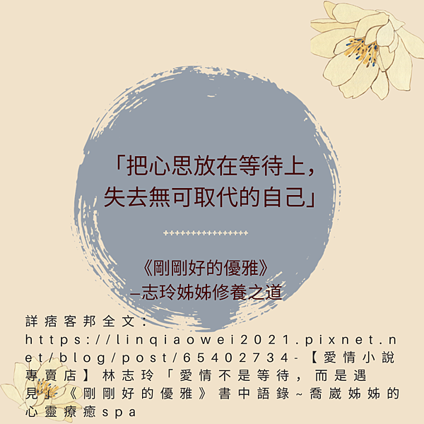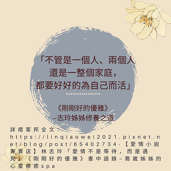 【愛情小說專賣店】林志玲《剛剛好的優雅》書中語錄~喬崴姊姊的心靈療癒spa