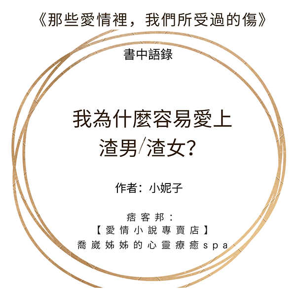 【愛情小說專賣店】之前喬崴姊姊曾經談過【遇到渣男怎麼辦?「四個方法對渣男免疫」】,這次想再次探討渣男渣女的議題,是因為小妮子的書《那些愛情裡,我們受過的傷》裡,提到的是從另一個視角—回歸過往經驗和自身來看,為什麼容易愛上渣男/渣女?