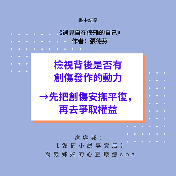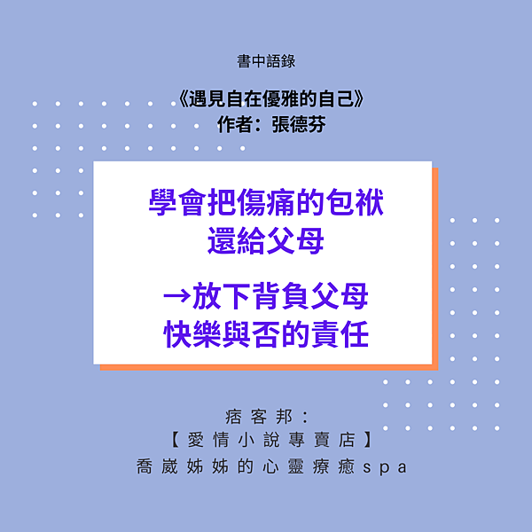【愛情小說專賣店】你的幸福有前提嗎?張德芬《遇見自在優雅的自己》書中語錄~喬崴姊姊的心靈療癒spa