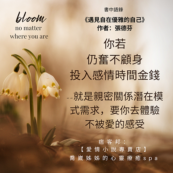 【愛情小說專賣店】你的幸福有前提嗎?張德芬《遇見自在優雅的自己》書中語錄~喬崴姊姊的心靈療癒spa