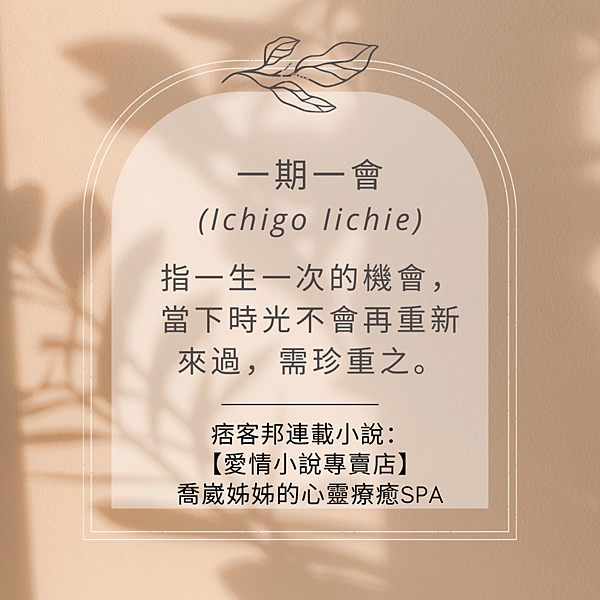 好朋友也分享她參加自媒體YT艾琳的分享會,上課時提到「一期一會」(Ichigo Iichie),這是源自於日本茶道的成語,意指一生一次的機會,當下時光不會再重新來,需珍重之。