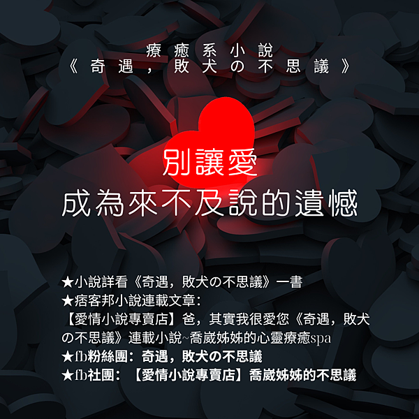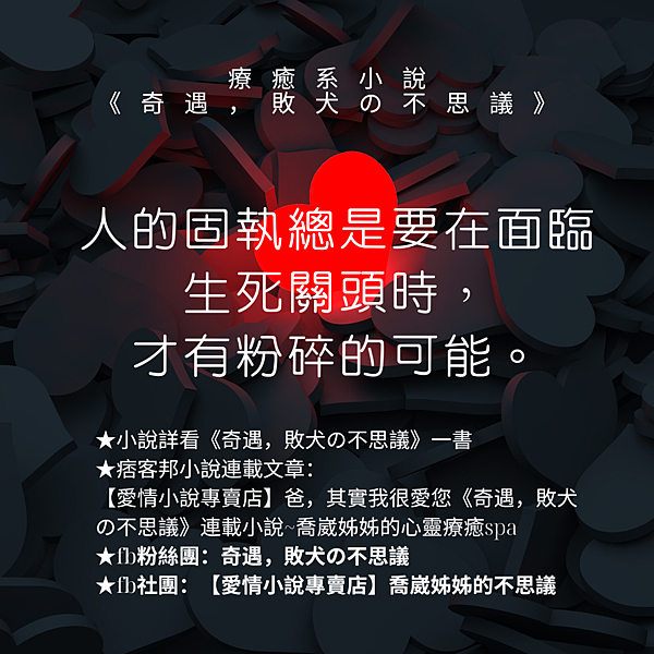 【愛情小說專賣店】感謝有你的陪伴《奇遇,敗犬の不思議》連載小說~喬崴姊姊的心靈療癒spa